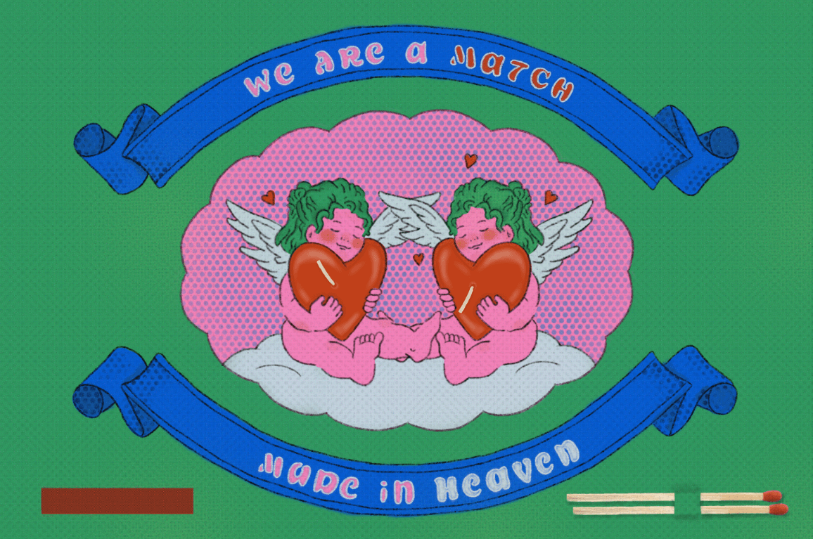 Match Made in Heaven is a greeting card I designed for people who find "I love you" hard to say out loud. Instead of relying on words alone, I created an interactive experience where striking a match and lighting a candle becomes the message itself. Because sometimes the best way to express love is to light it up together.